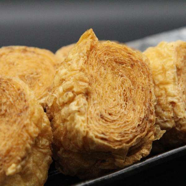 湯葉をミルフィーユ状にし、巻いて輪切りにした一品です